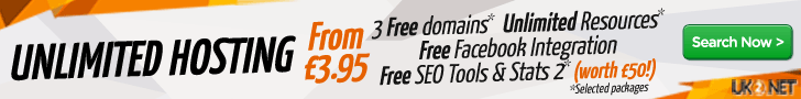 UK Unlimited hosting with 3 free domains, unlimited resources, free facebook integration and free tools & Stats 2.